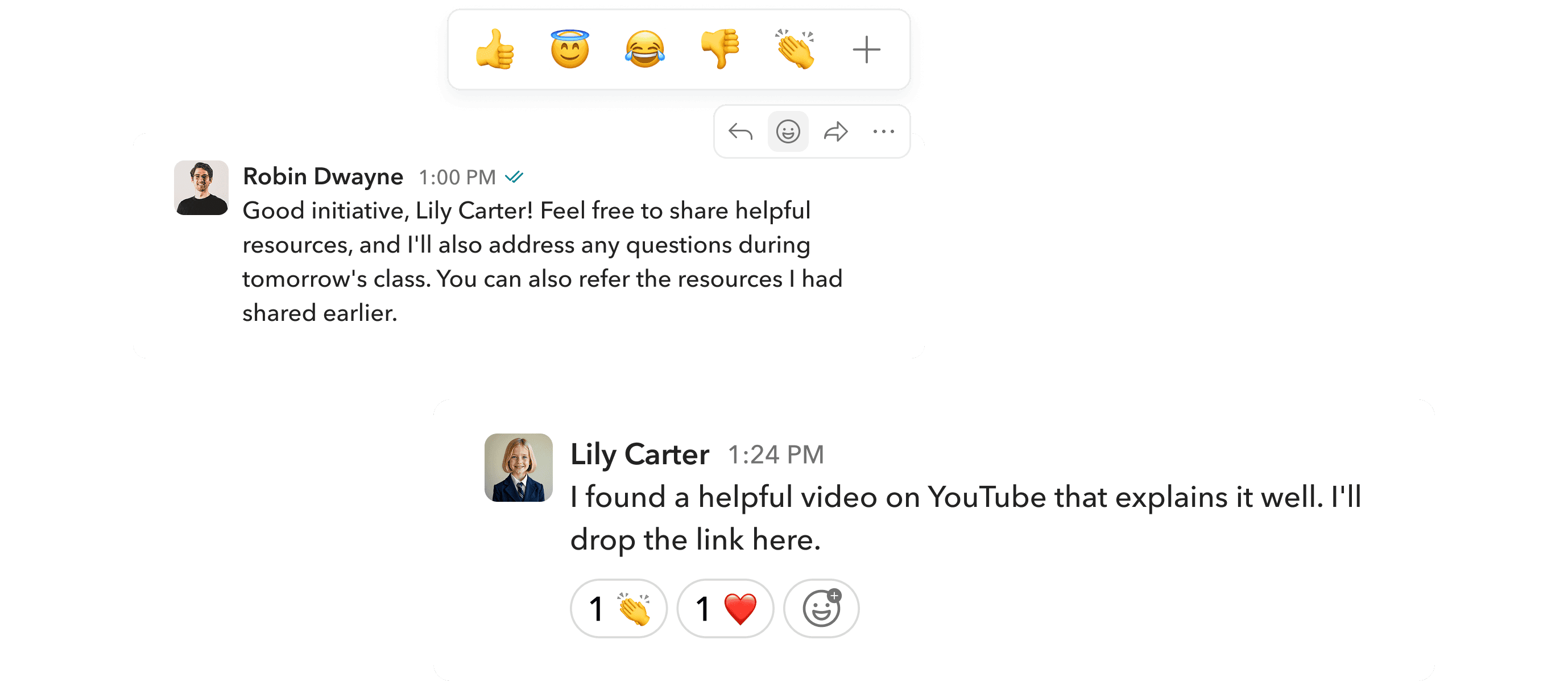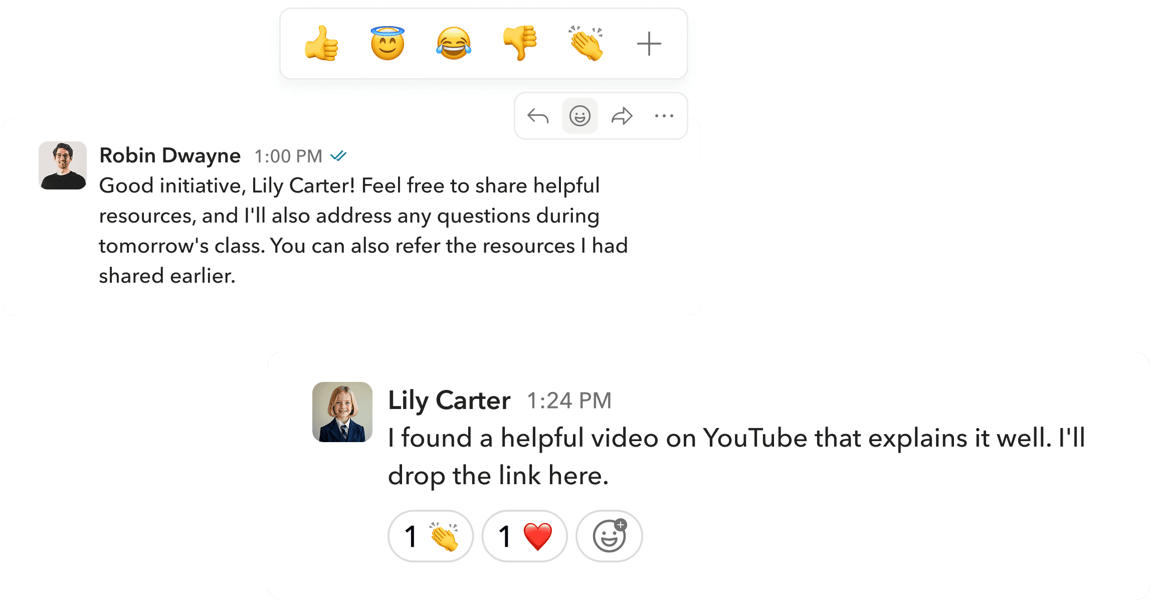 Users can react to messages, making conversations more lively and expressive. Reactions also let them share quick feedback without sending a separate message.