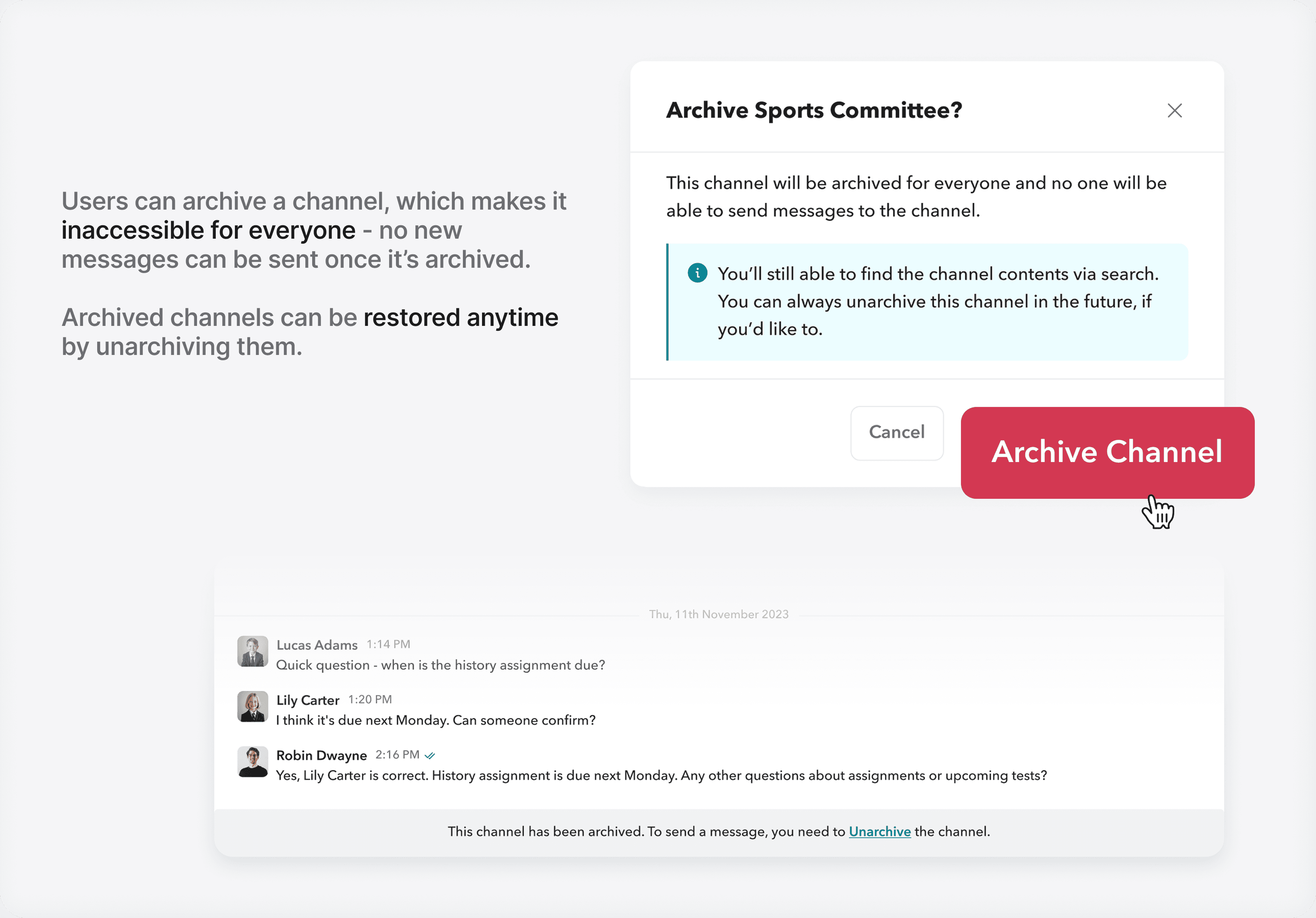 This also makes it easier to follow context when revisiting older conversations, as replies keep discussions connected and easy to track.
