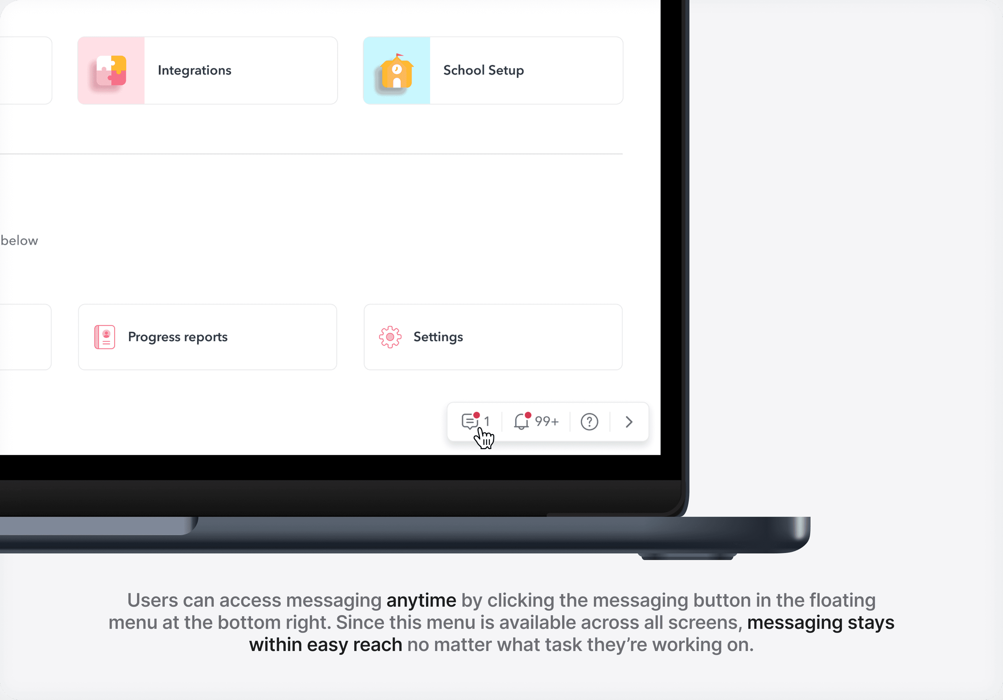 So every time a teacher needed to speak to someone, they had to exit whatever they were doing, find the homepage, open the family messaging module, open the chat, and start from scratch. It wasn’t just inconvenient. It was broken.