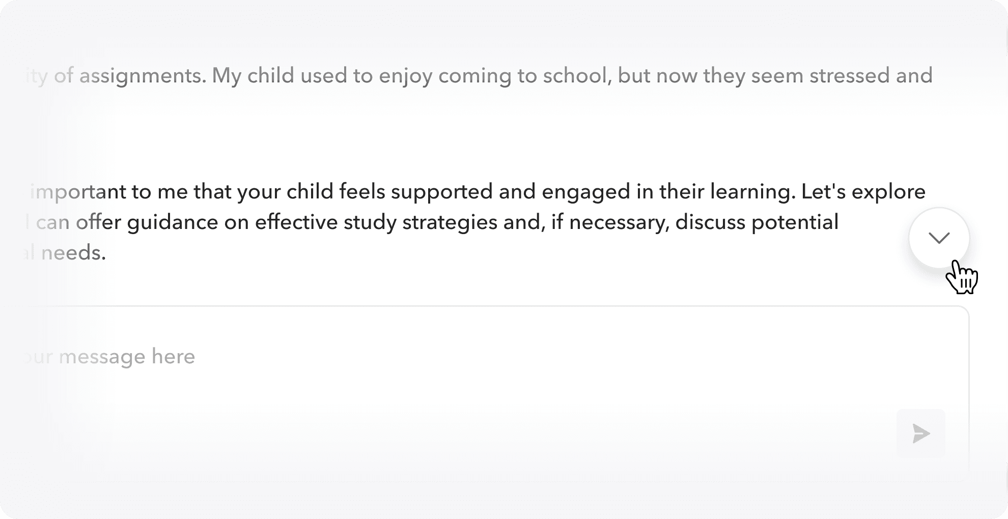 When users scroll up in a conversation, a Scroll to Bottom button appears on the bottom right. Clicking it takes them straight to the latest message, saving time and effort.